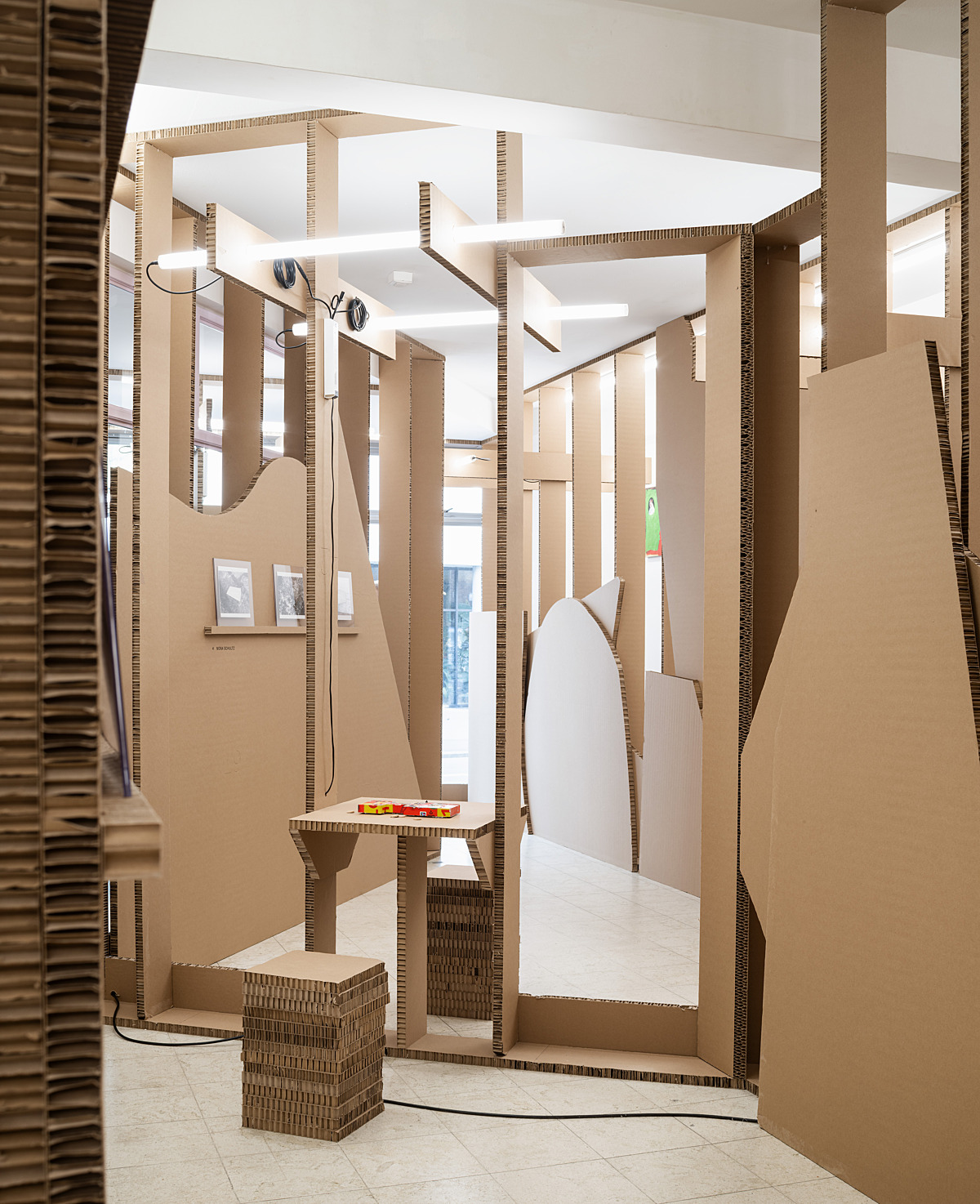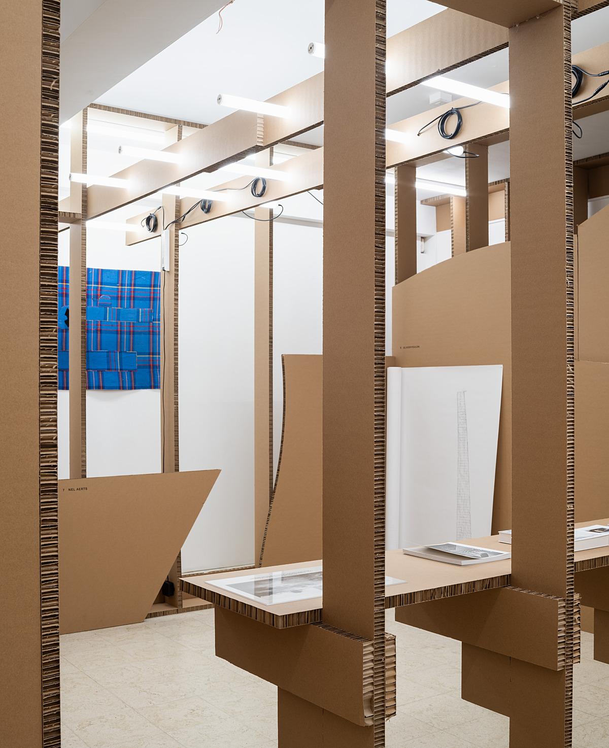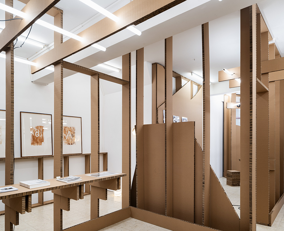 LLS Paleis: "For Erntedankfest 2025, 019-Ghent takes over LLS Paleis with Interim Structure, a temporary construction built from recycled materials and playful improvisation. This installation places chance and experimentation at its core, creating a shifting landscape where process, material, and presentation merge. The scenography for the annual Erntedankfest — a benefit project raising funds for LLS Paleis — is developed this year by artists’ collective 019. The exhibition features a wide range of contributions: art books, artist publications, multiples, limited editions, and unique works."