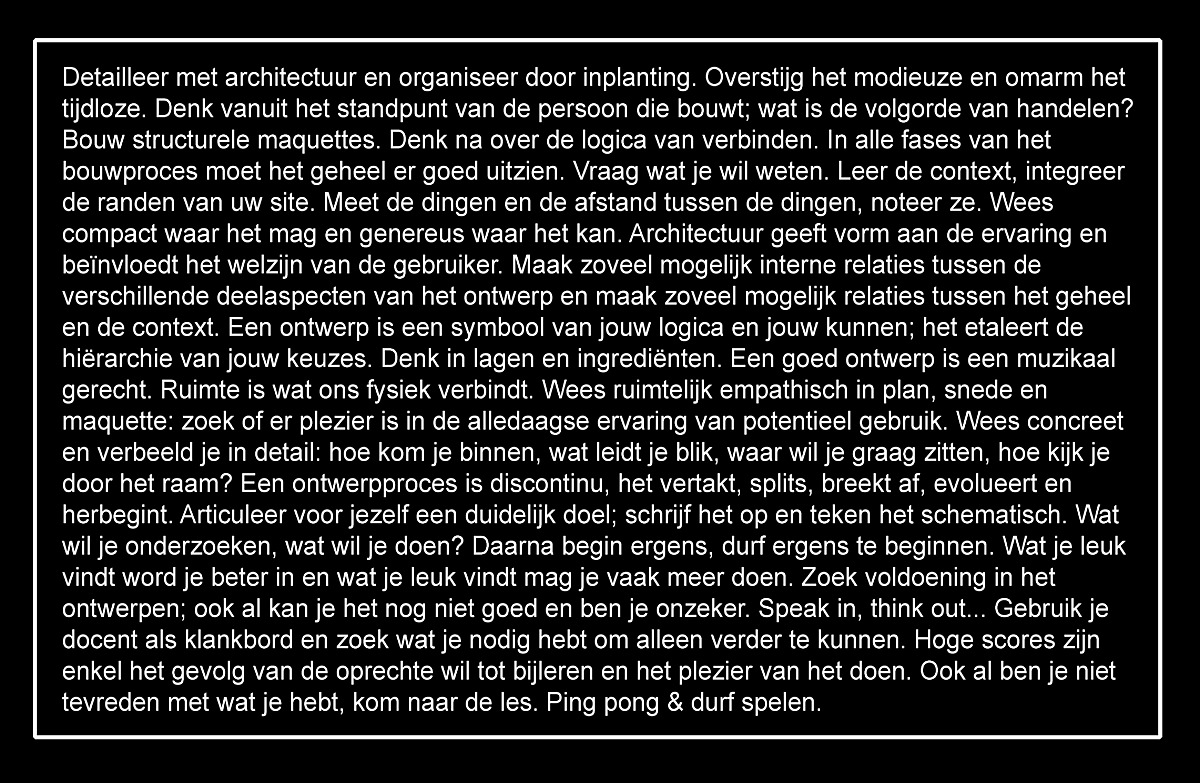 Coordinator first bachelor Architecture Ghent KULeuven; concept exercise: Olivier Goethals.